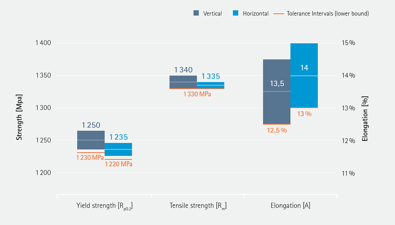 | EN ISO 6892-1 Room Temperature | | Yield Strength [MPa] | Tensile Strength [MPa] | Elongation at Break A [%] | Reduction of Area Z [%] | Modulus of elasticity [GPa] | Number of Samples |